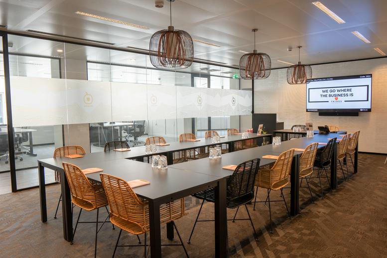 Boardroom Facilities Tenants who rent office space at this center have access to boardrooms, either included in the rental price or for a small additional fee.