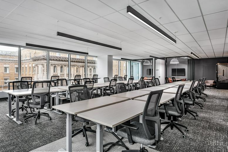 Wellington features award-winning design, steps from Union Station and King Subway. Three complimentary ROOM phone booths, drop-in desks and booths in kitchen allow for various work environments. Spacious offices with sit-stand desks, designed for larger teams mean Wellington is home to an exclusive amount of companies.