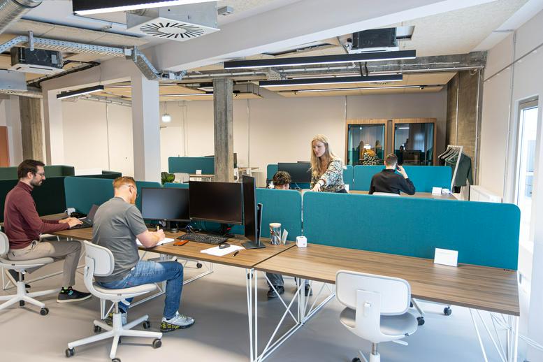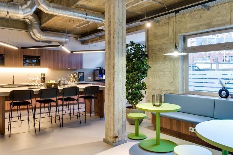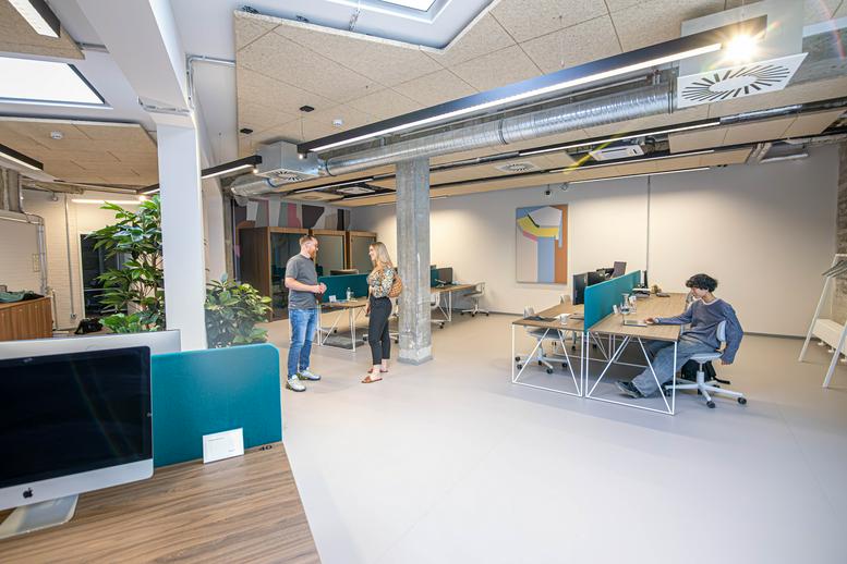 The 7,000 square meter space offers a wide variety of uses in fully equipped and tastefully furnished working worlds and with convenient all-in-one services. In the flexibly rentable individual or team offices and fixed workstations in the coworking areas, it's easy to get started. The stylish units are equipped with everything one needs to work in a concentrated manner. The center offers amenities such as fully furnished offices, including a 55" Samsung Flip 2 touchscreen (studio only) as well as secure and easy access with transponders, access to high-speed wifi, a dedicated mailbox (studio only), complimentary coffee/tea and water and a large monthly printing quota included. The center also offers a lounge and kitchen. The space is also dedicated to cocreation zones and sun terraces.