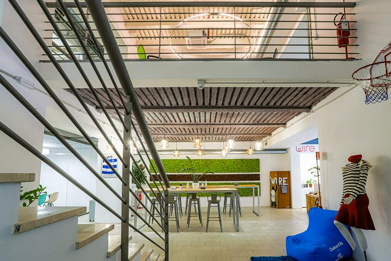 Wire Coworking è a Roma Ostiense all'interno degli ex Mulini Biondi. Work & Inspire: soluzioni sicure e flessibili per il tuo lavoro, senza vincoli, spazi e i servizi pensati per offrirti la migliore esperienza di lavoro. 1500 mq,120 postazioni di lavoro individuali attrezzate in open space, 10 uffici privati, 9 sale meeting di diverse dimensioni, kids room, caffetteria con cucina attrezzata, palestra, area relax e diverse aree gioco.